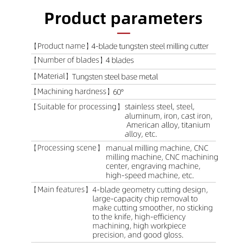 End Mill 4 Flute square End Mills Tungsten Carbide End Mill High Precision and Use for Hardness Material