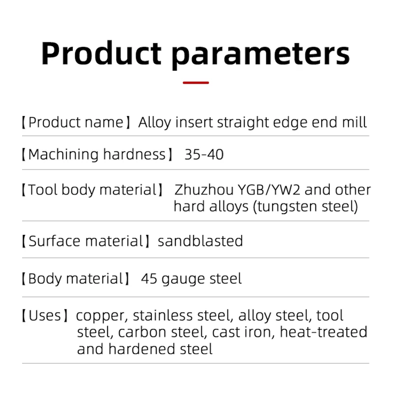 | Product name | Straight edge end mill with alloy insert |